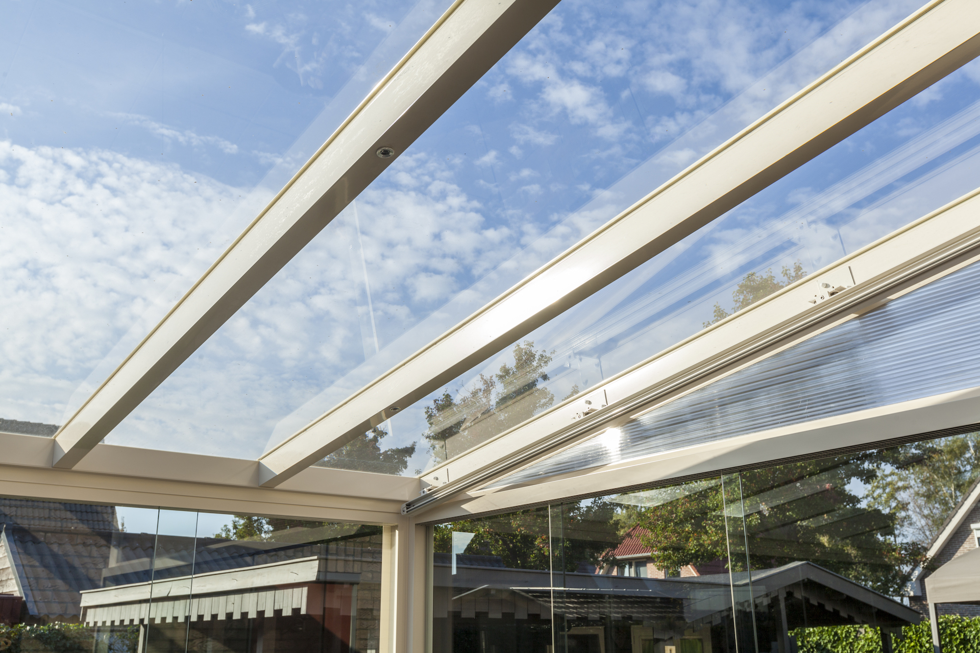 Behalve dat het ruimtelijk oogt en mooi uitzicht geeft, heeft een glazen dak ook nadelen. Zo is vuil en viezigheid snel en goed zichtbaar op een glazen dak. Daarnaast houdt glas geen warmte of licht tegen, waardoor je wellicht additioneel nog (boven)zonwering moet aanschaffen om zelf te kunnen bepalen of je onder je overkapping in de zon wil zitten of toch liever de warmte een beetje buiten wil houden.