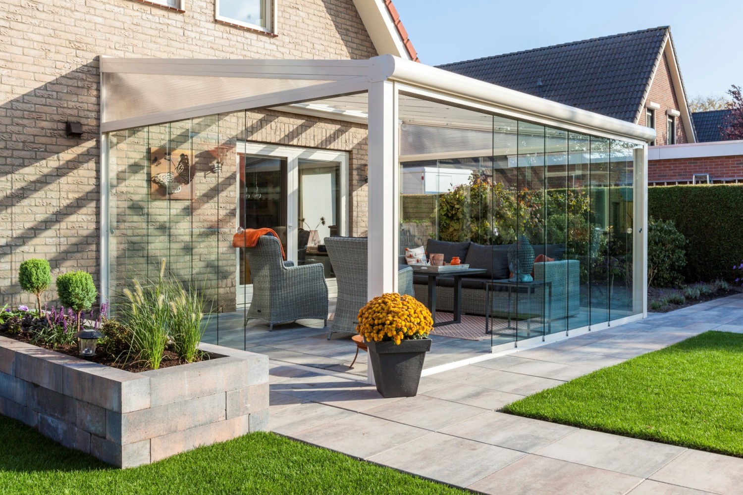 Ideaal aan het plaatsen van een terrasoverkapping, is dat je deze kunt uitbreiden. Wil je bijvoorbeeld naast droog ook geheel windvrij genieten? Dan kun je glazen schuifwanden (laten) monteren in jouw aluminium of houten overkapping. Hierdoor behoud je het vrije zicht op je prachtige tuin, terwijl je geen last hebt van de wind. Bij mooi weer schuif je de glazen panelen open, zodat je volop van het zonlicht kunt genieten. Uiteraard hoef je dat niet meteen te doen. Je kunt eerst een overkapping plaatsen en later nog glazen schuifwanden toevoegen.