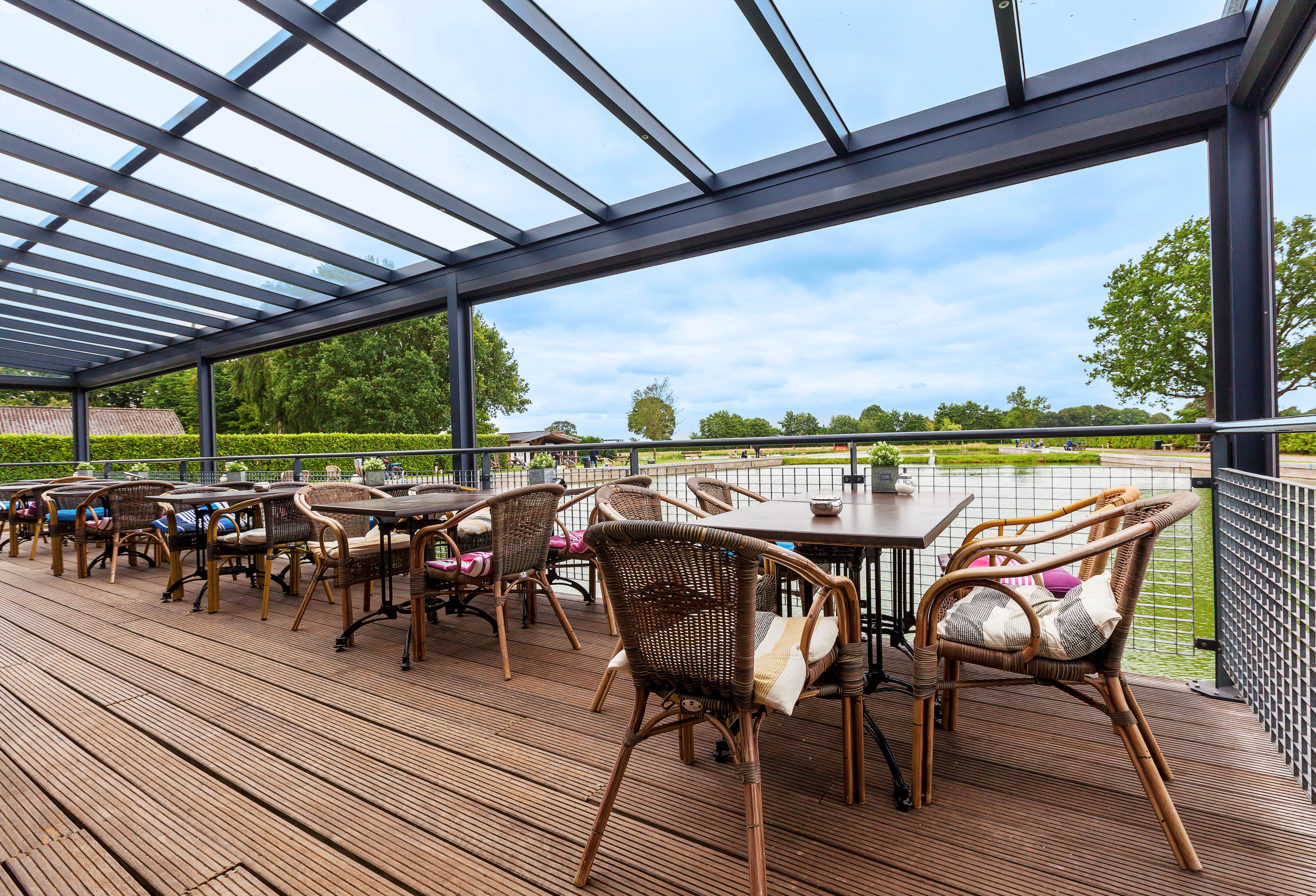 • Een terrasoverkapping geeft je gasten een stijlvolle en beschutte plek om te zitten, het hele jaar door.