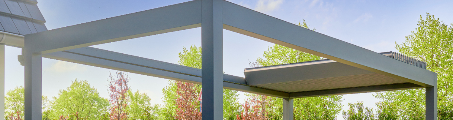 In een handomdraai de beschikking over een open ruimte boven het terras? Met één druk op de knop opent u de lamellen van de Pinela Deluxe en creëert u een cabrio-effect in uw tuin.