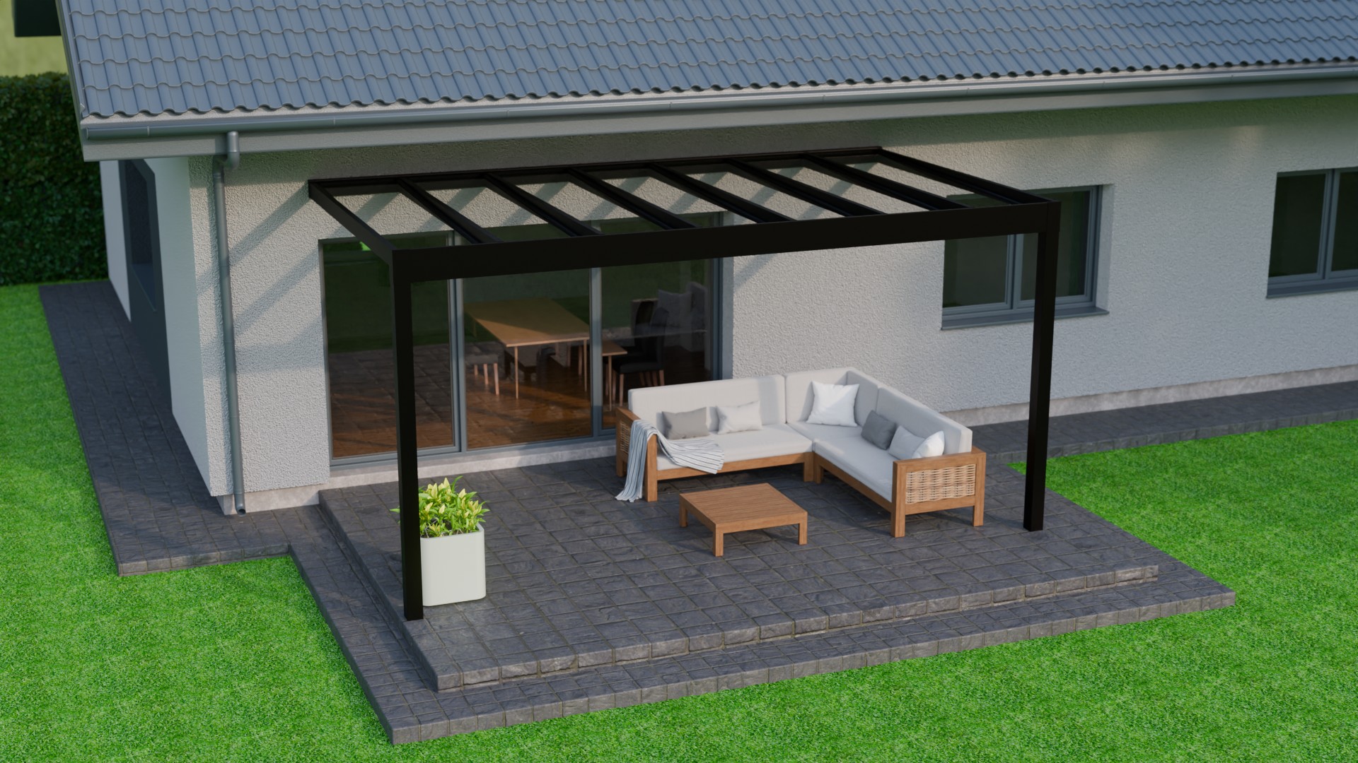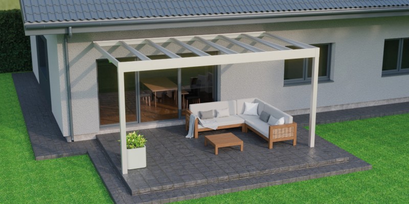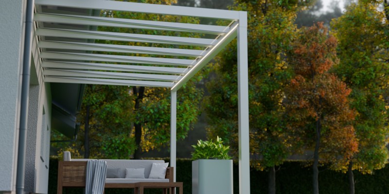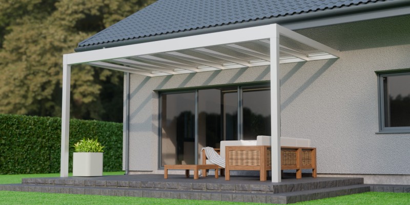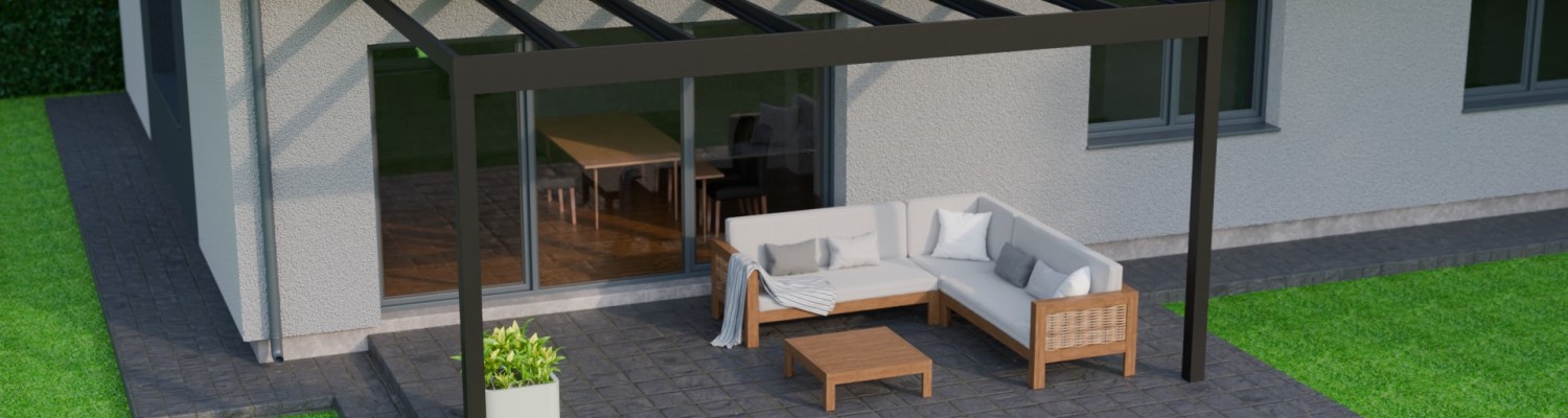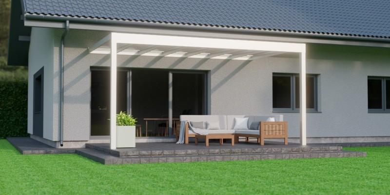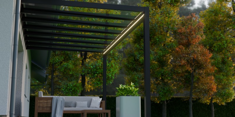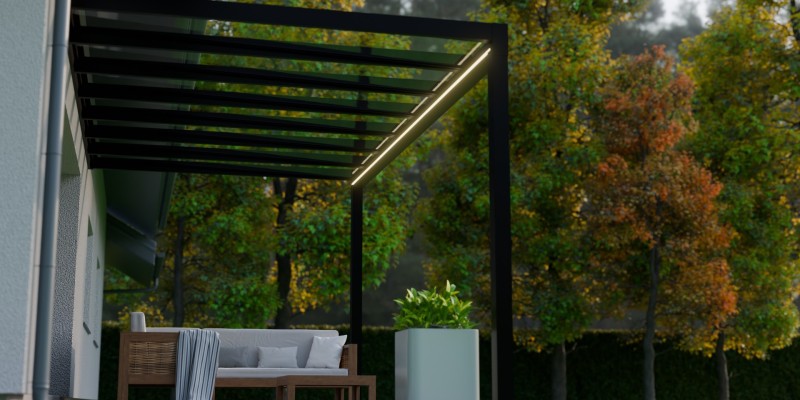 Lees meer +Een zomeravond waarin het zachte licht van de geïntegreerde LED verlichting de sfeer bepaalt. Onder de Trebbiano krijgt genieten met gezelschap een nieuwe betekenis. Deze kubistische en stijlvolle overkapping brengt verfijning en functionaliteit samen. Met een indrukwekkende overspanning van zeven meter, ondersteund door slechts twee staanders, biedt de Trebbiano ruimtelijke vrijheid. Bovendien zorgt het thermisch versterkte glas voor een ononderbroken zicht naar boven. Perfect om de sterrenhemel te bewonderen. Dankzij het rechte dak, is de Trebbiano veelzijdig inzetbaar, zelfs als carport.